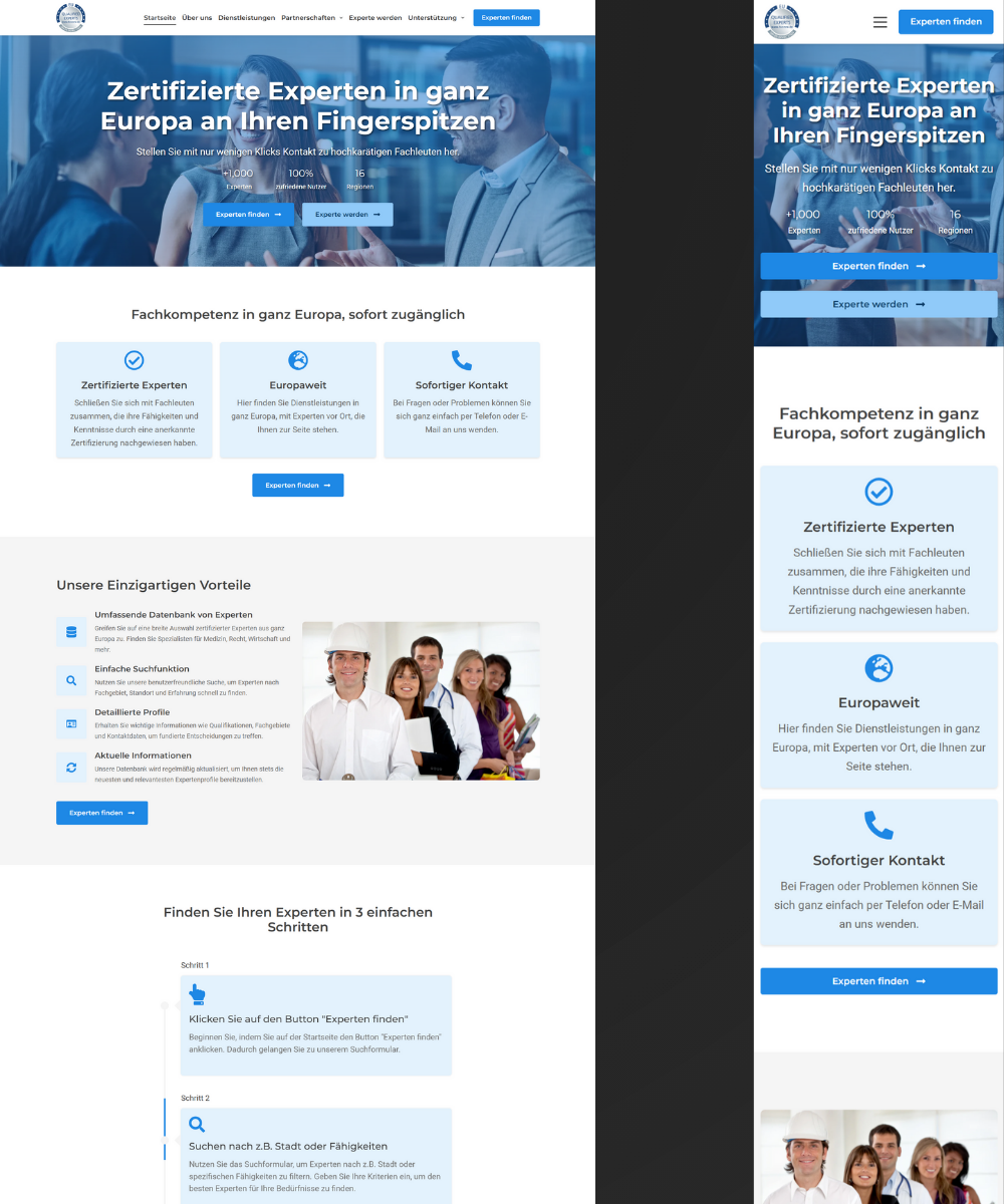 Objective: Develop a user-friendly platform enabling users to find certified experts across Europe.